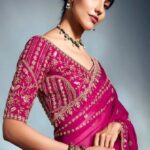 - Color: The saree is a striking, saturated fuchsia or magenta pink. The color is bold and festive.